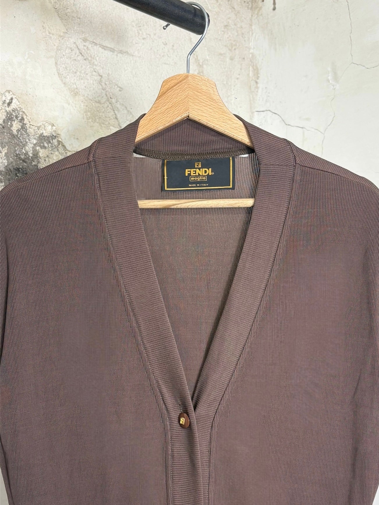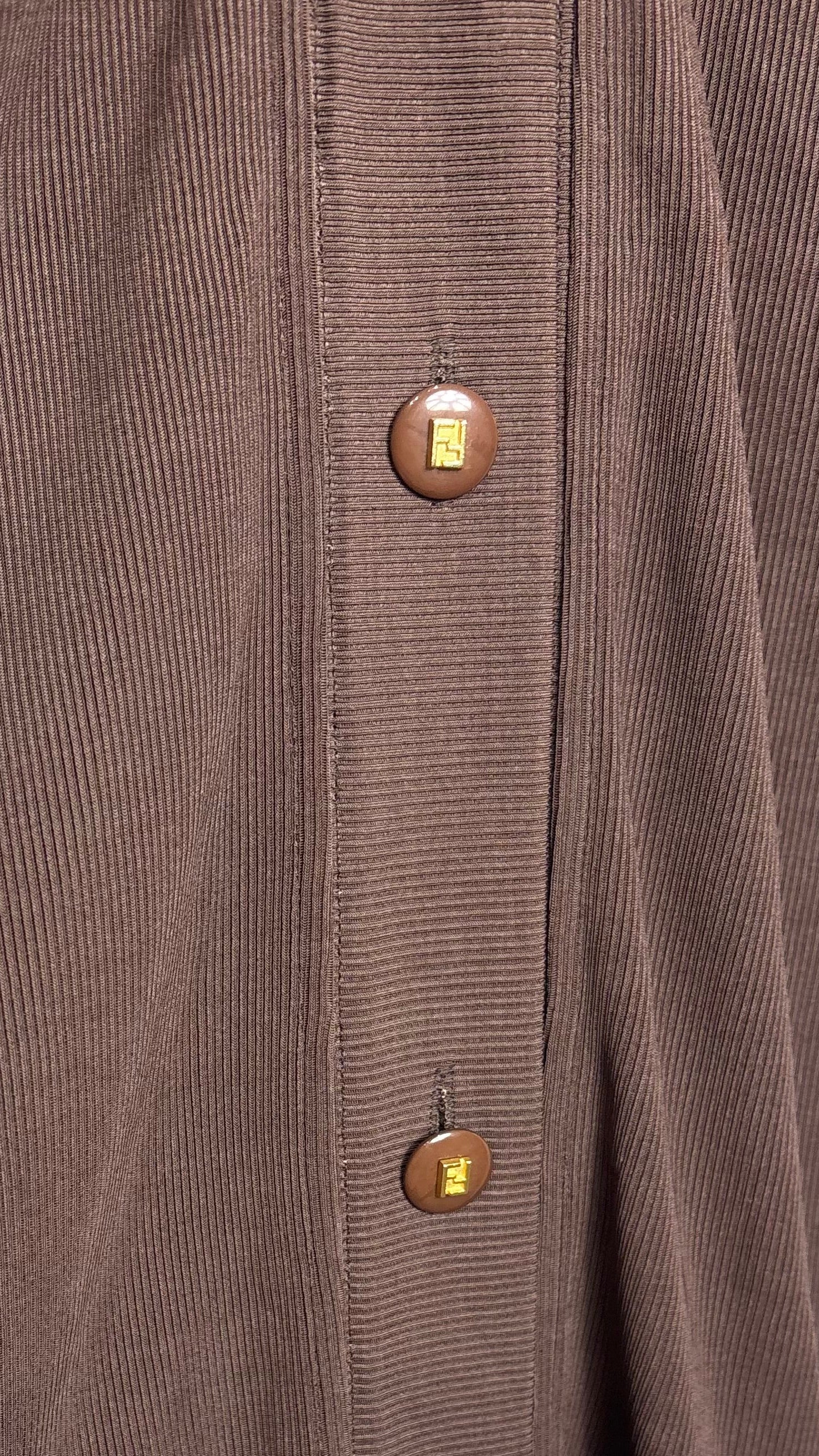 The Fendi dress is a ribbed cardigan designed for versatile styling. Its breathable fabric provides comfort in warm weather, while the ribbed texture enhances durability and fit. Ideal for layering, this piece combines functionality with high-fashion elegance.