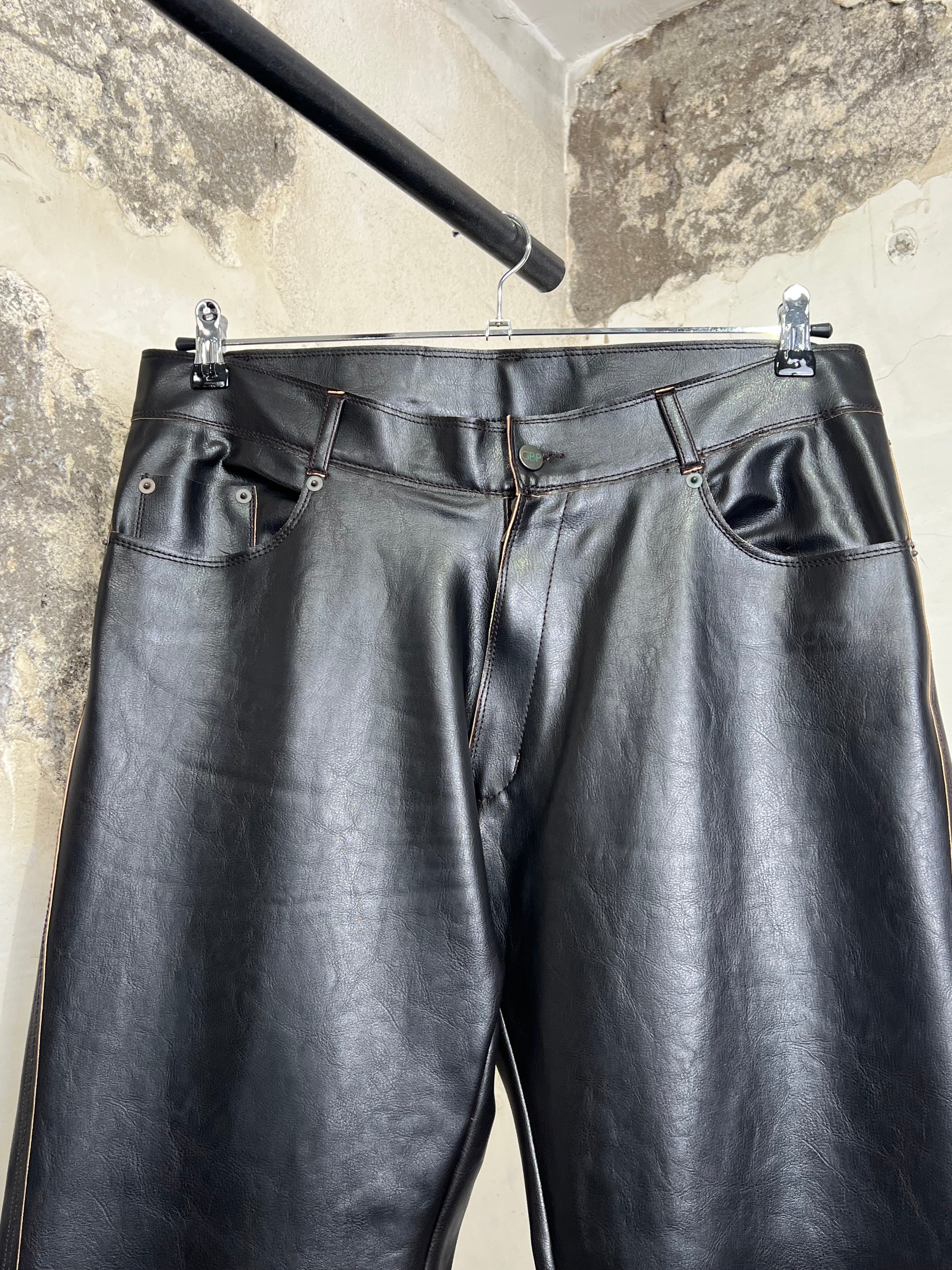 Sleek deep brown leather suit featuring a structured blazer with sharp lapels and clean stitching, paired with straight‑leg trousers. A modern, minimalist design by Our Legacy, offering a refined silhouette and contemporary edge for bold, elevated styling.